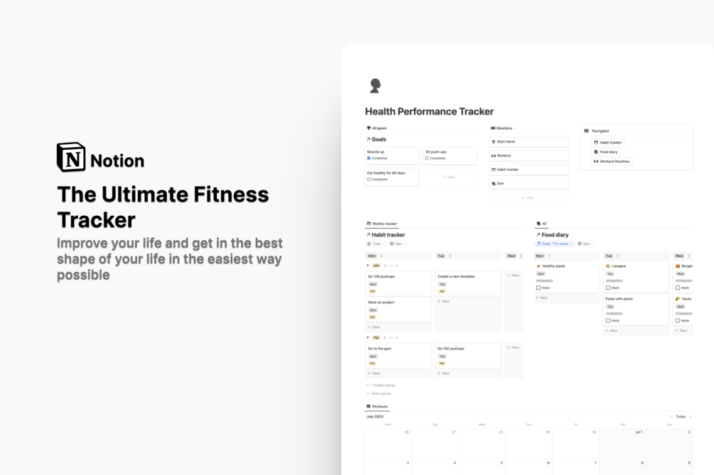 - π And More: Unleash the full potential of the Notion Health Performance Tracker with additional features designed to optimize your fitness journey. It's the all-in-one solution you've been waiting for!